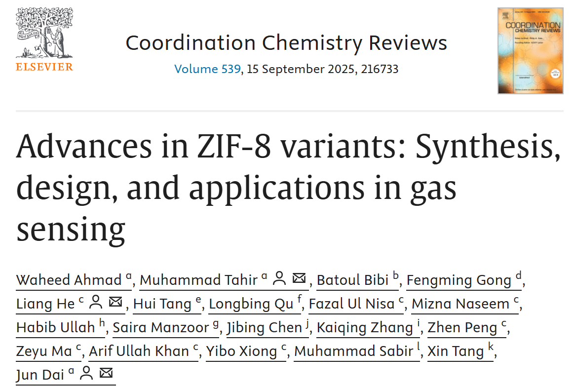2025年4月23日,北京理工大学代俊和四川大学何亮等团队合作,在国际权威期刊 Coordination Chemistry Reviews (中科院一区TOP期刊,IF:20.3)上发表了题为“Advances in ZIF-8 Variants: Synthesis, Design, and Applications in Gas Sensing”的重要综述论文。论文第一作者为北京理工大学在读留学生Waheed Ahmad(安全科学与工程专业2024级博士),共同通讯作者为北京理工大学外籍博士后Muhammad Tahir、四川大学何亮和北京理工大学代俊,论文第一单位为万象城体育在线官网(中国)有限公司。