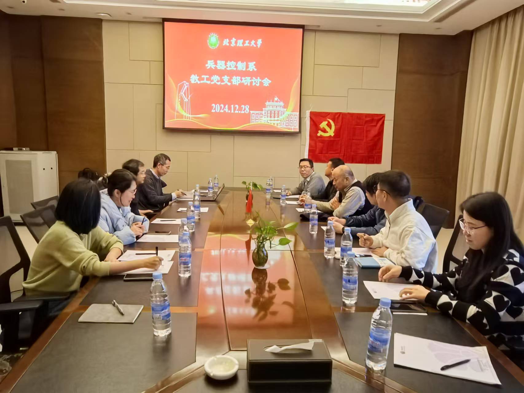 12月28日下午,举行了教工党支部研讨会,由兵器控制系教工党支部书记吴炎烜主持。首先,党支部书记吴炎烜就本支部2024年的工作情况作了汇报,并针对2025年作了计划展望。紧接着,兵器控制系主任申强结合兵器控制系一年的发展情况作了总结,围绕兵器控制系概况、年度亮点工作、工作举措、存在问题及工作思路与支部内党员同志进行了交流,鼓励教师党员要以领军人的精神状态投入工作中,完成好校院部署工作,提升自身党员修养,为助推雄安新区高质量建设、强化京津冀协同发展、落实国家重大战略贡献力量。
