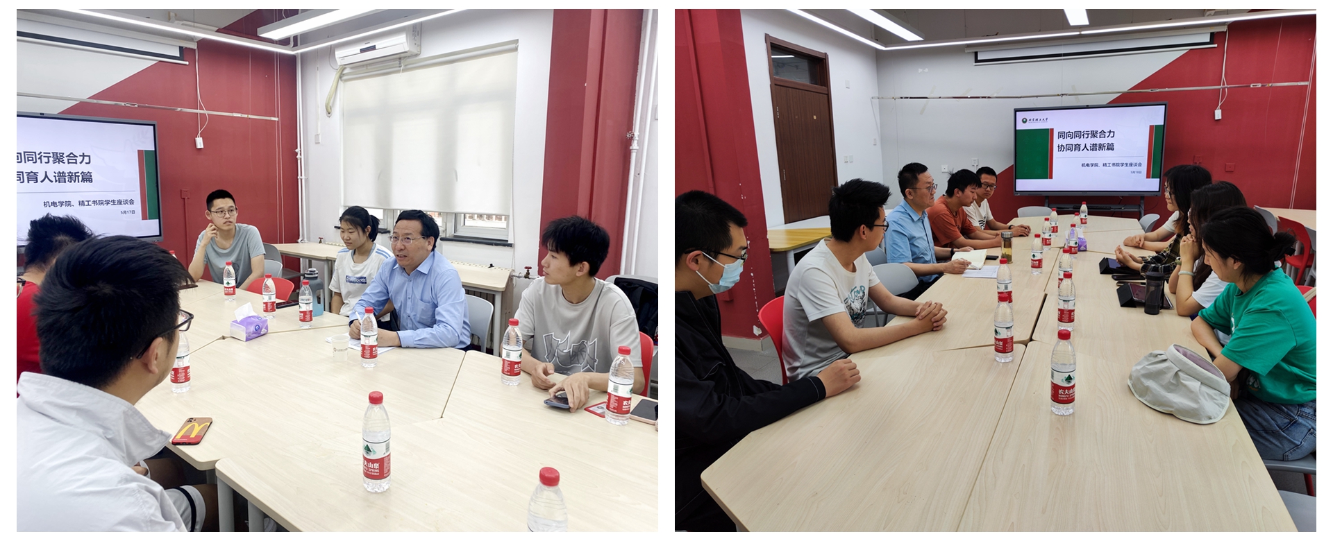 按照学校党委关于开展学习贯彻习近平新时代中国特色社会主义思想主题教育的部署要求,深入学生开展调查研究,进一步强化书院学院协同育人,推动学生综合素质提升,5月17日、18日上午,机电学院院长王成、党委书记王亚斌分别前往良乡校区丹枫C115与精工书院学子调研交流,精工书院2021级、2022级二十余位学生代表参与交流。