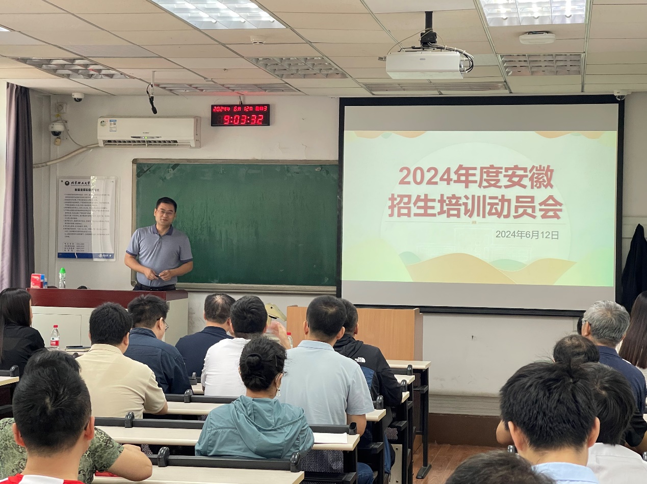6月12日上午,安徽招生组召开2024年度安徽招生培训动员会,机电学院全体班子成员与安徽省各地区领航人参会。
