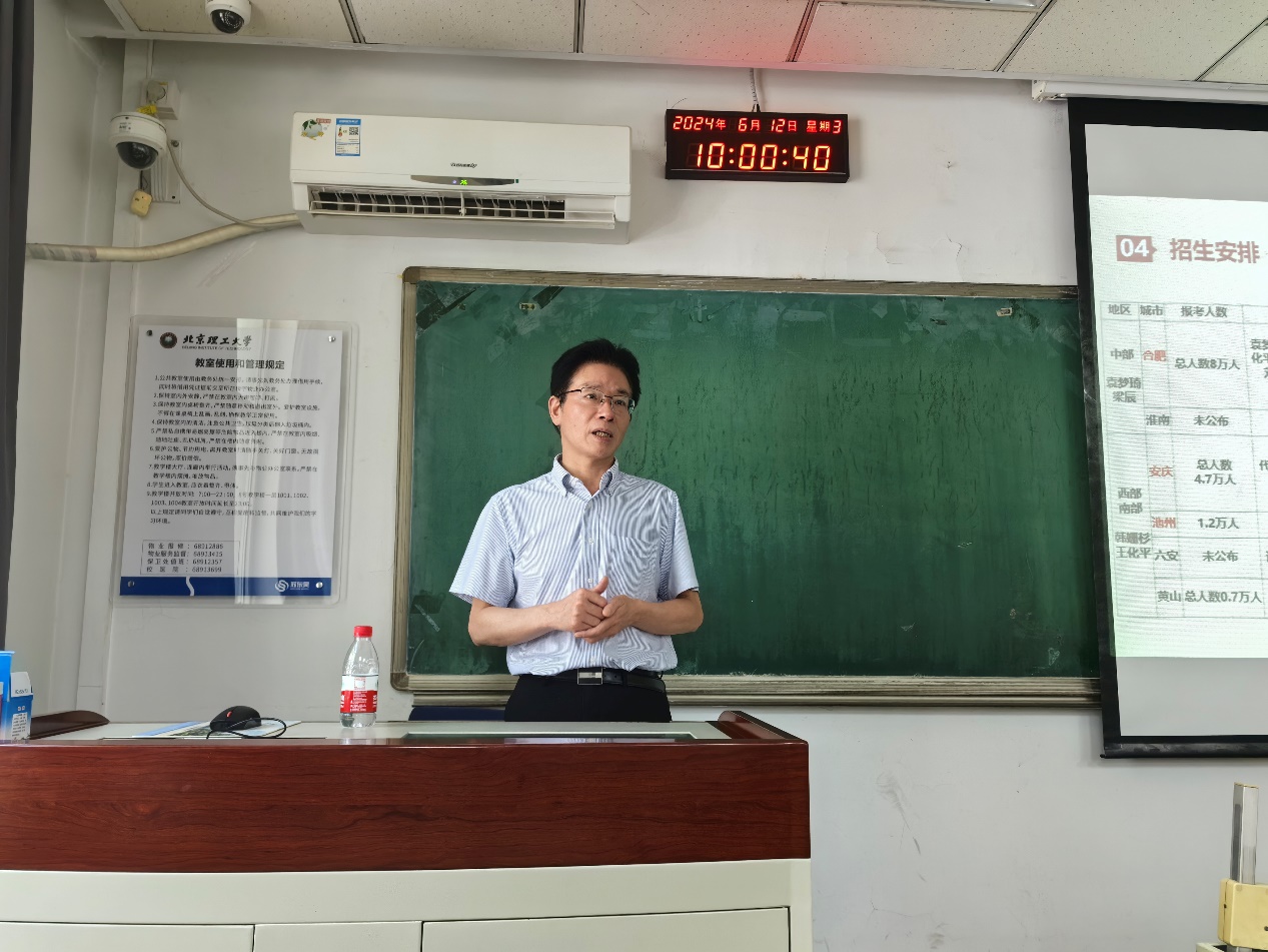 会上,黄广炎副院长回顾了去年的安徽省的招生情况,着重介绍了今年招生政策上的变化,提出了多个方面的注意事项,并对招生工作进行了具体要求。
