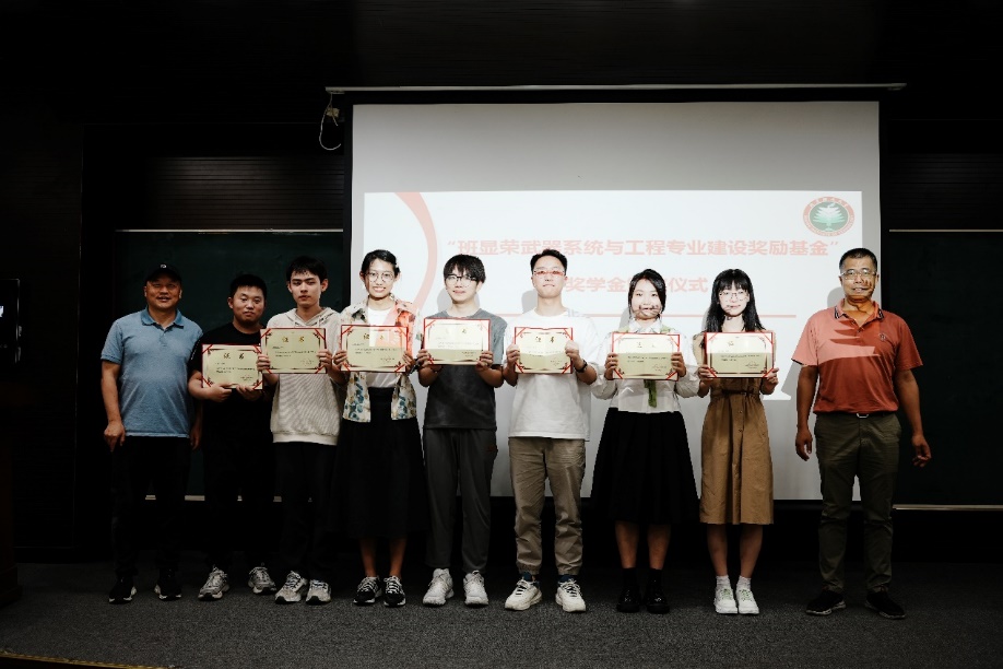 机电系统工程系主任申强介绍了班显荣校友的生平简介和捐款初衷。学科及专业责任教授娄文忠以及机电系统工程系部分教师为获奖学生颁发了荣誉证书。