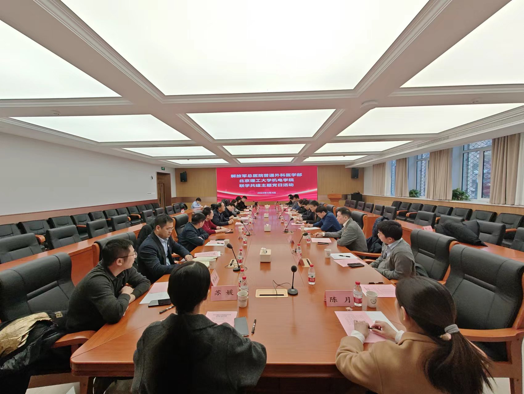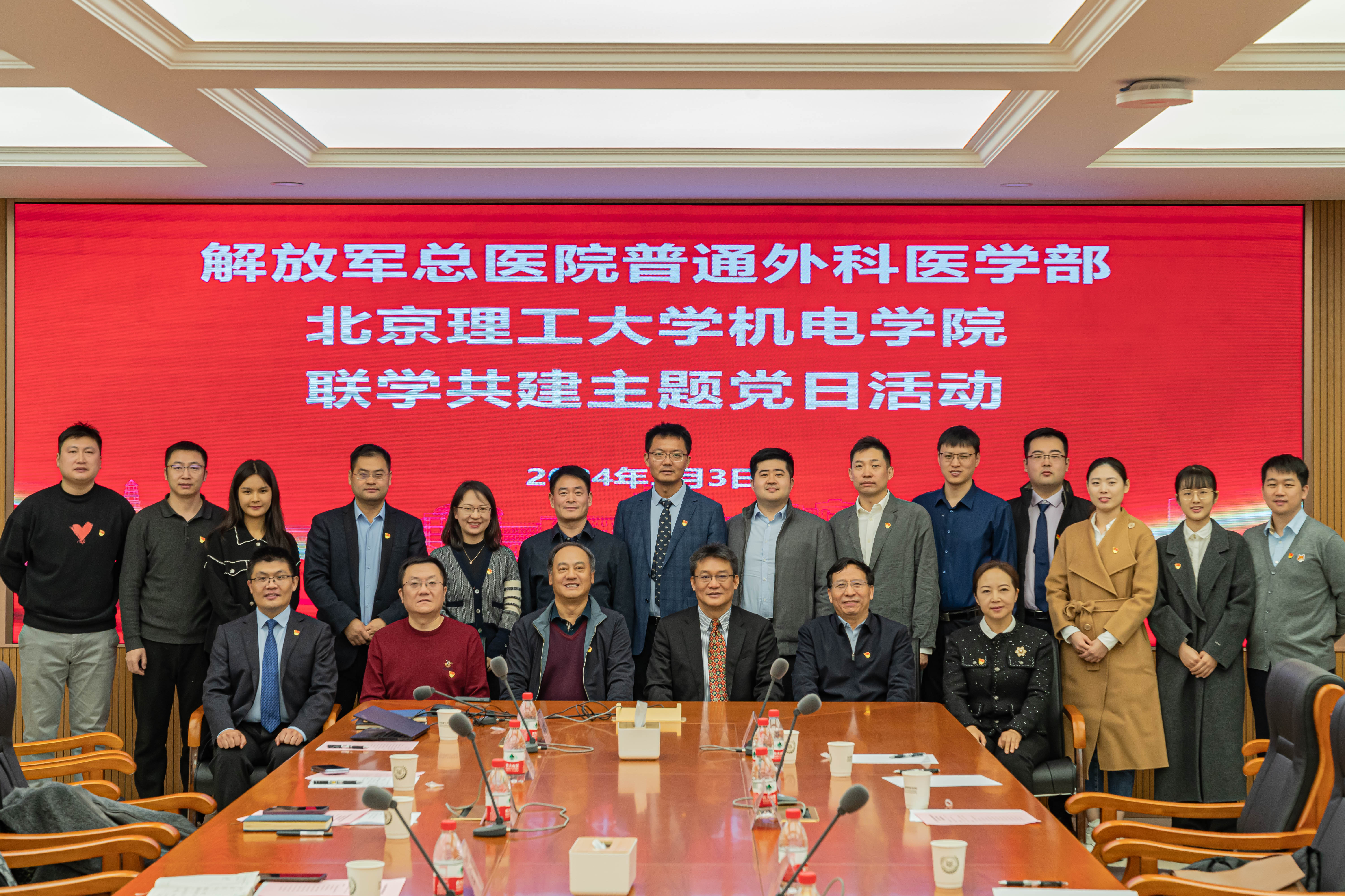 为深化党建引领,推动学习宣传贯彻落实党的二十大精神往深里走、往实里走,3月3日下午,解放军总医院普通外科医学部腹部创伤外科与万象城体育在线官网(中国)有限公司开展联学共建主题党日活动。解放军总医院普通外科医学部腹部创伤外科主任徐文通、副主任郗洪庆、护士长祁爱英、副主任医师崔建新,北京理工大学交叉学部主任黄风雷,机电学院党委书记王亚斌、院长王成,副院长刘彦、黄广炎、袁梦琦以及双方党员代表共计30余人参加活动。活动由机电学院党委副书记、副院长韩姗杉主持。
